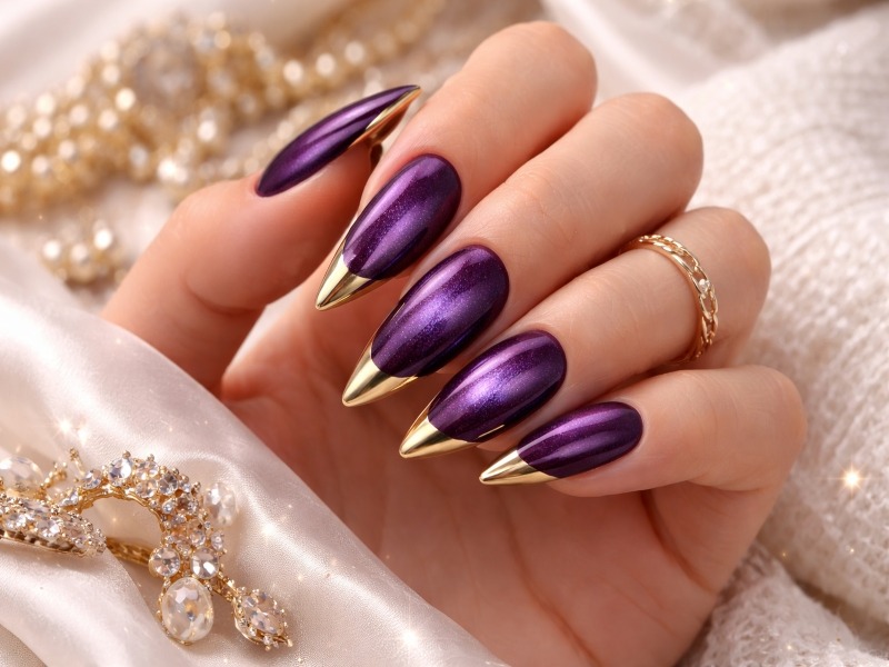 This style is all about adding depth and elegance to your nails. The dark purple creates an aura of mystery, while the gold tips provide a glamorous touch. Best for: Evening events, galas, or anytime you want your nails to exude elegance and mystery.