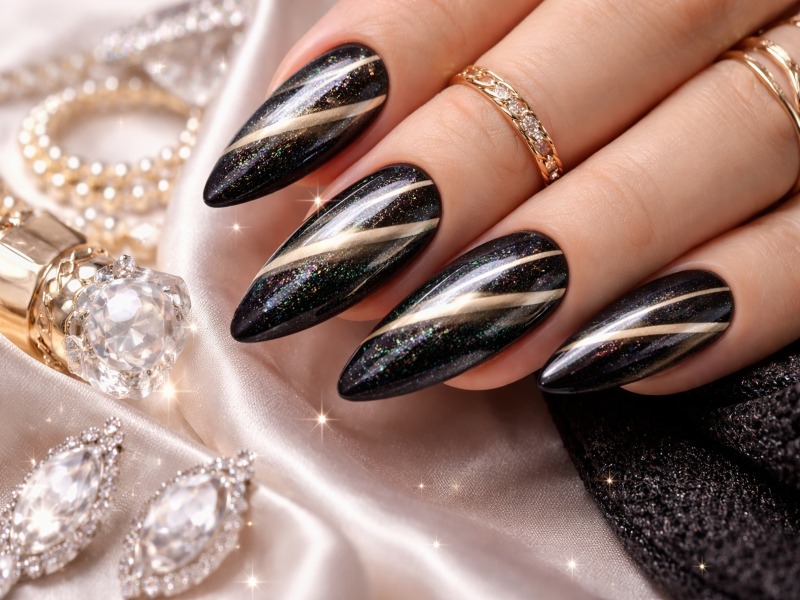 You can choose from gold, silver, or even copper for the metallic lines to create an elegant yet edgy vibe. Best for: A night out, cocktail parties, or formal events where you want to make a statement.