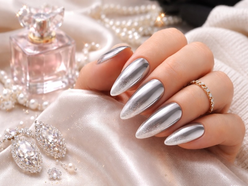 This style works well for those who love the mirror-like finish of chrome but also want a little extra glamour without going over the top. Best for: Casual days when you want to elevate your look, or for parties where you want a little extra sparkle.